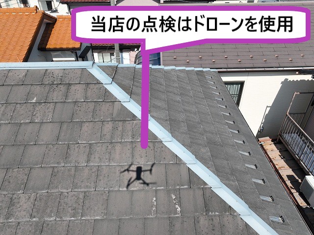 お伺いしたのは桶川市内の閑静な住宅地。築20年でスレート屋根のメンテナンスは初めてとのことでした。早速、ドローンと目視により屋根の状態をチェック。