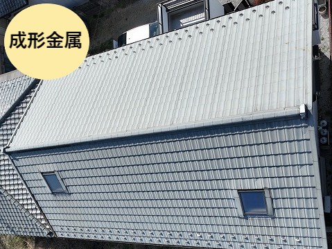 屋根材は成形金属屋根で、比較的軽量で耐久性があるものの、板金部分の固定が緩むと雨漏りのリスクが高まる屋根でもあります。