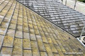 屋根の一部に緑色のコケが点々と発生していました。