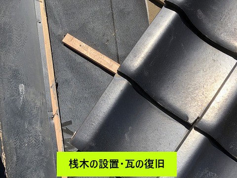 瓦を安定させるための桟木を取り付け、元通りに瓦を戻します。