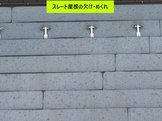 さらに、屋根全体を見ると、スレート屋根材の欠けやめくれも複数箇所で確認されました。