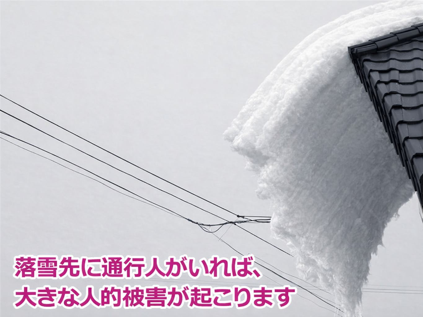 最近は大雪が降る回数は多くありませんが、その分一度積もると一気に滑り落ちることがあり、思わぬ事故につながることもあります。