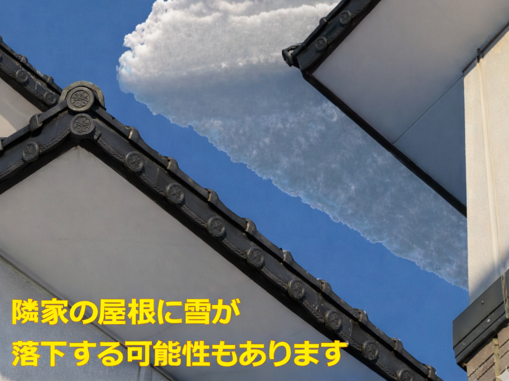 屋根に積もった雪は、気温の変化や日差しの影響で滑りやすくなり、一度に大量に落下することがあります。