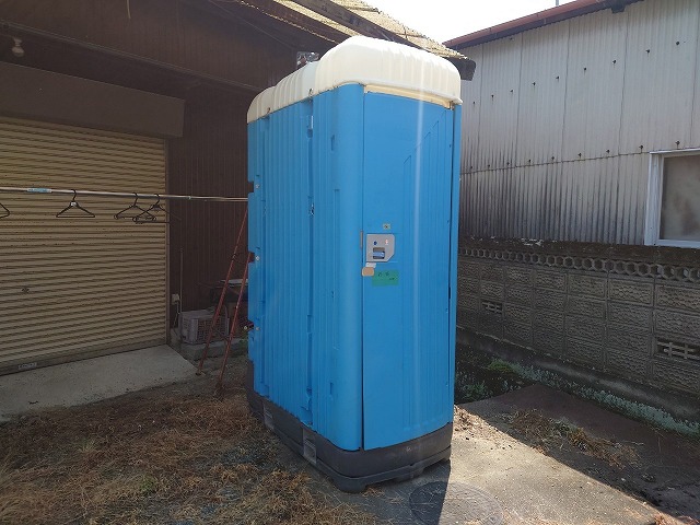 敷地内の邪魔にならないところに現場用仮設トイレを設置しました。