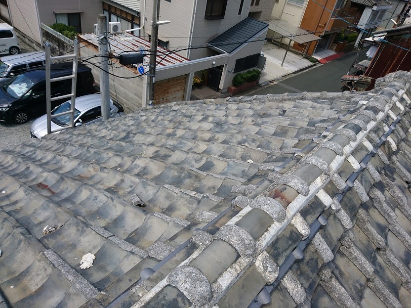 築50年以上というだけあって、瓦も傷んでいるのが分かると思います。