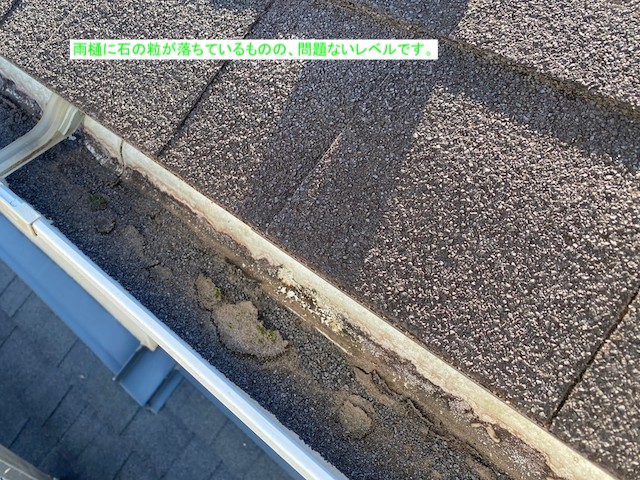 ちなみに今回のお住まいは築14年であり、雨樋に少量の石粒が溜まっていました。しかしながら、この程度であれば今すぐ直さなければならないレベルではありません。