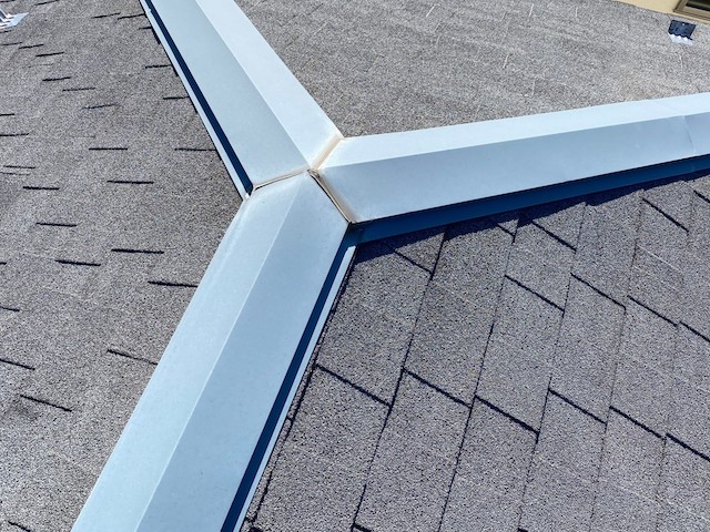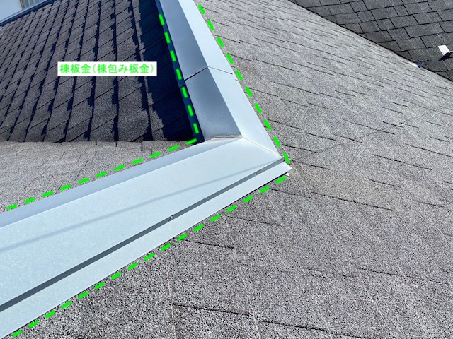 実は、「屋根+浮き」で一番考えられるのは棟なんです。今回のアスファルトシングル屋根の棟は、棟包み板金が使用されています。