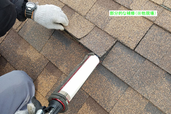 屋根浮きや剥がれが一部分であれば、再度接着するなどの部分的な補修を行います。