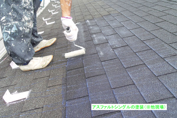アスファルトシングルは、表面に石粒が吹付けられている屋根材で、表面石粒は経年とともに少しずつ剥がれてしまいます。