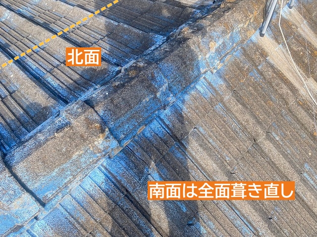 本来は屋根を一新する葺き替えがベストですが、築年数やオーナー様のご要望などを鑑みた結果、棟際に破損が見つかった南面のみの葺き直しをご提案させていただきました。