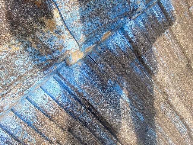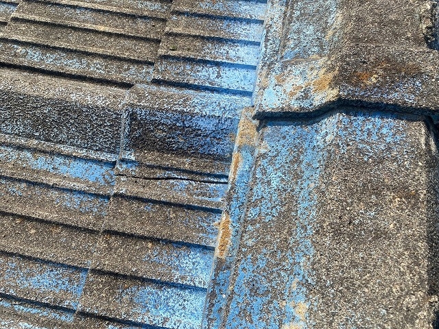 平面のみを葺き直す場合、通常の施工範囲は棟の手前でまでとなりますが、今回は棟にも様々な問題を抱えています…σ( •́ ̯•̀ )