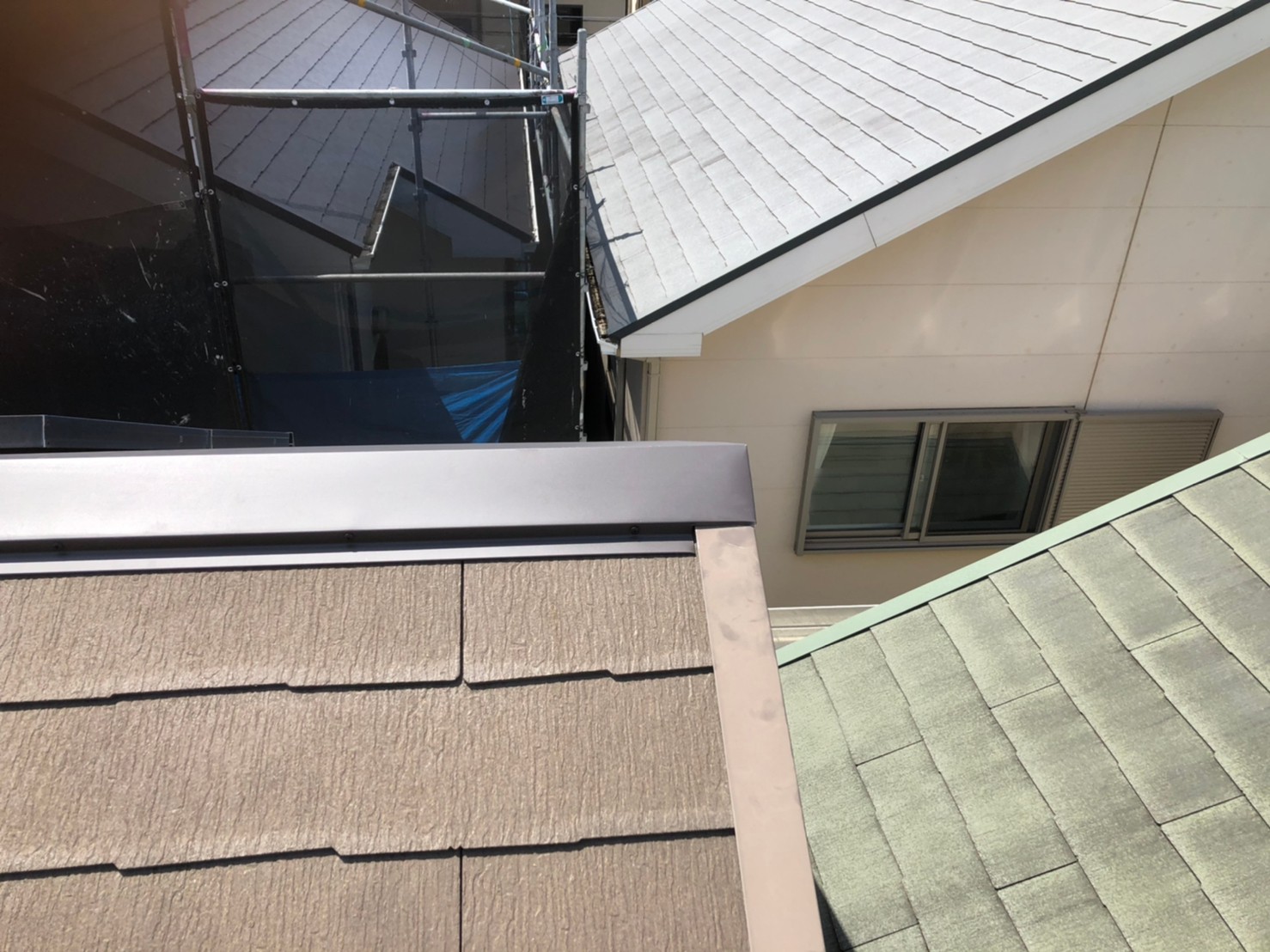 棟板金は現地調査時に事前に採寸しておいて、サイズに合わせて加工しておいたものを使用するので、ジャストサイズです。