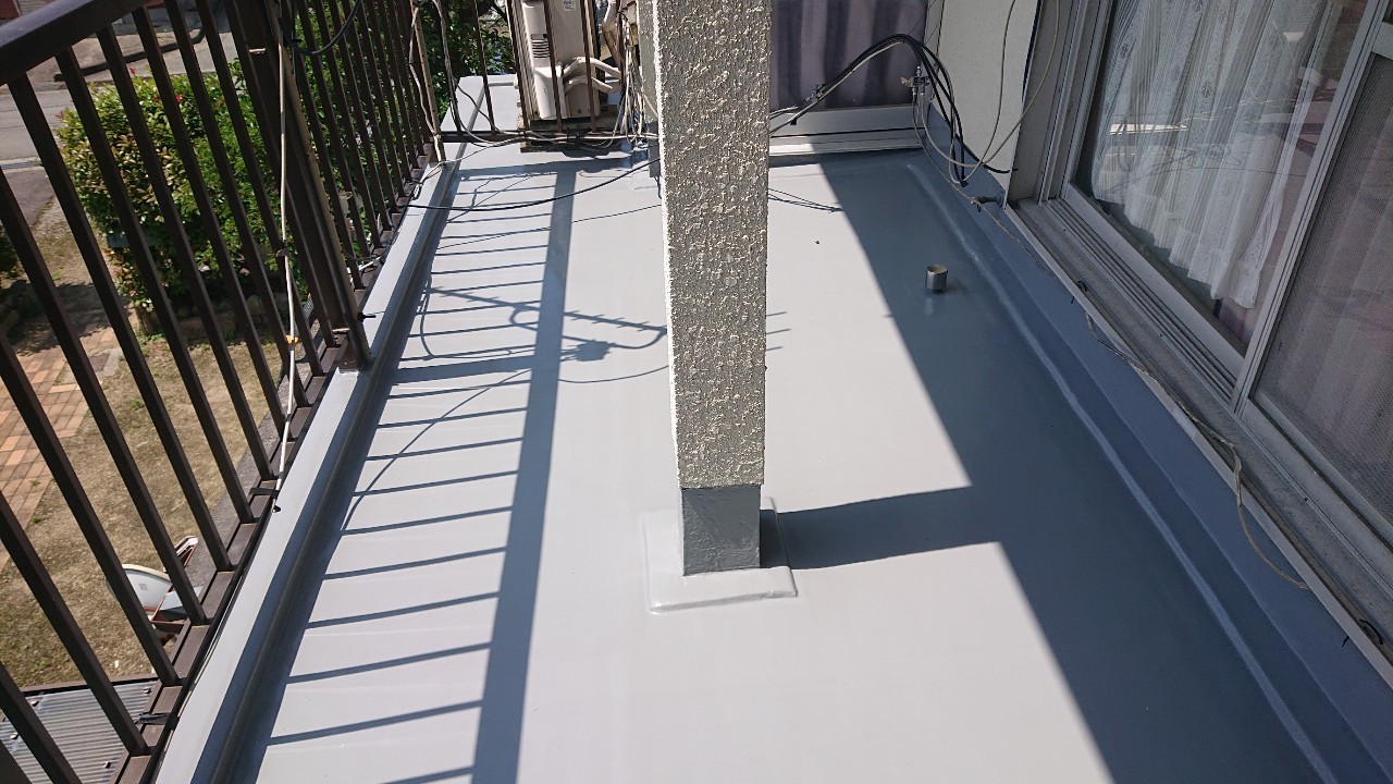 そして、ウレタン防水材をしっかりと2回塗ることで、雨漏りの心配はなくなりますね(^^)/最後に、保護のための「トップコート」を塗布します。