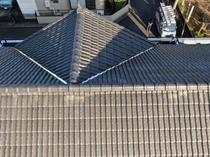 この写真には写ってないですけど、太陽光パネルも設置されている瓦屋根でしたね。寄棟という事もあり、棟瓦の長さが長いので漆喰のm数も必然的に長くなります。