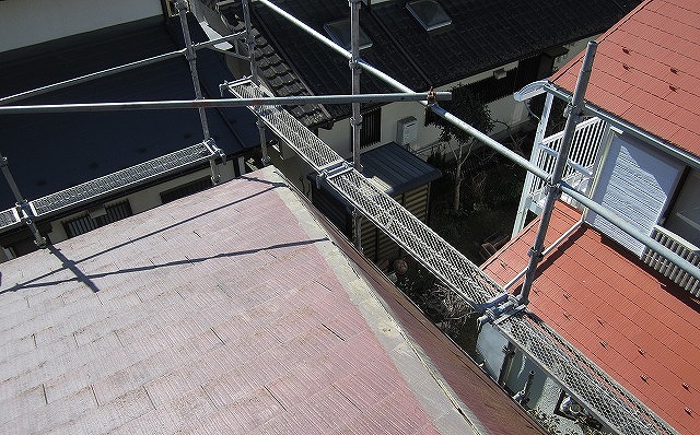 今回のお客様お宅の屋根は少し変わった形状をしております。