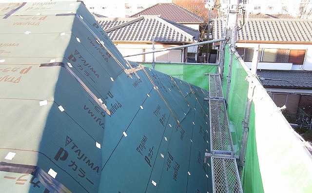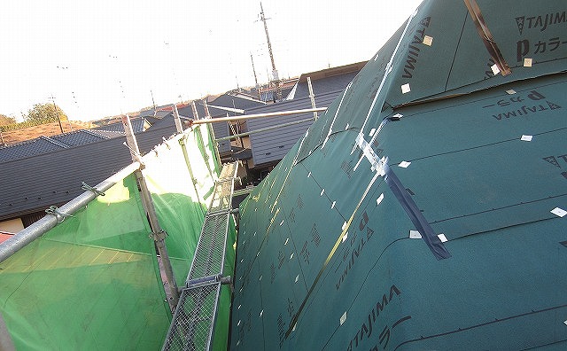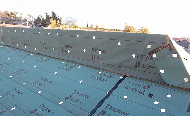 複雑な形状している部分は防水シートだけでなく、防水テープも使用ししっかりと貼っていきます。