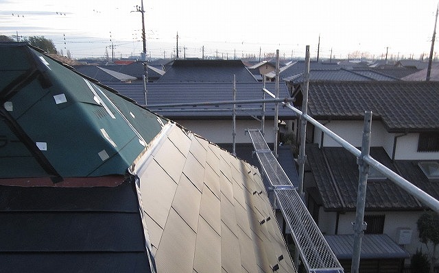 交換してしまった棟板金は次回葺き替えの際には壊してしまうしかないからです。