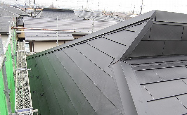 複雑な形状ですので屋根材のカットであったり、板金工事が通常の屋根より大変な作業になります。
