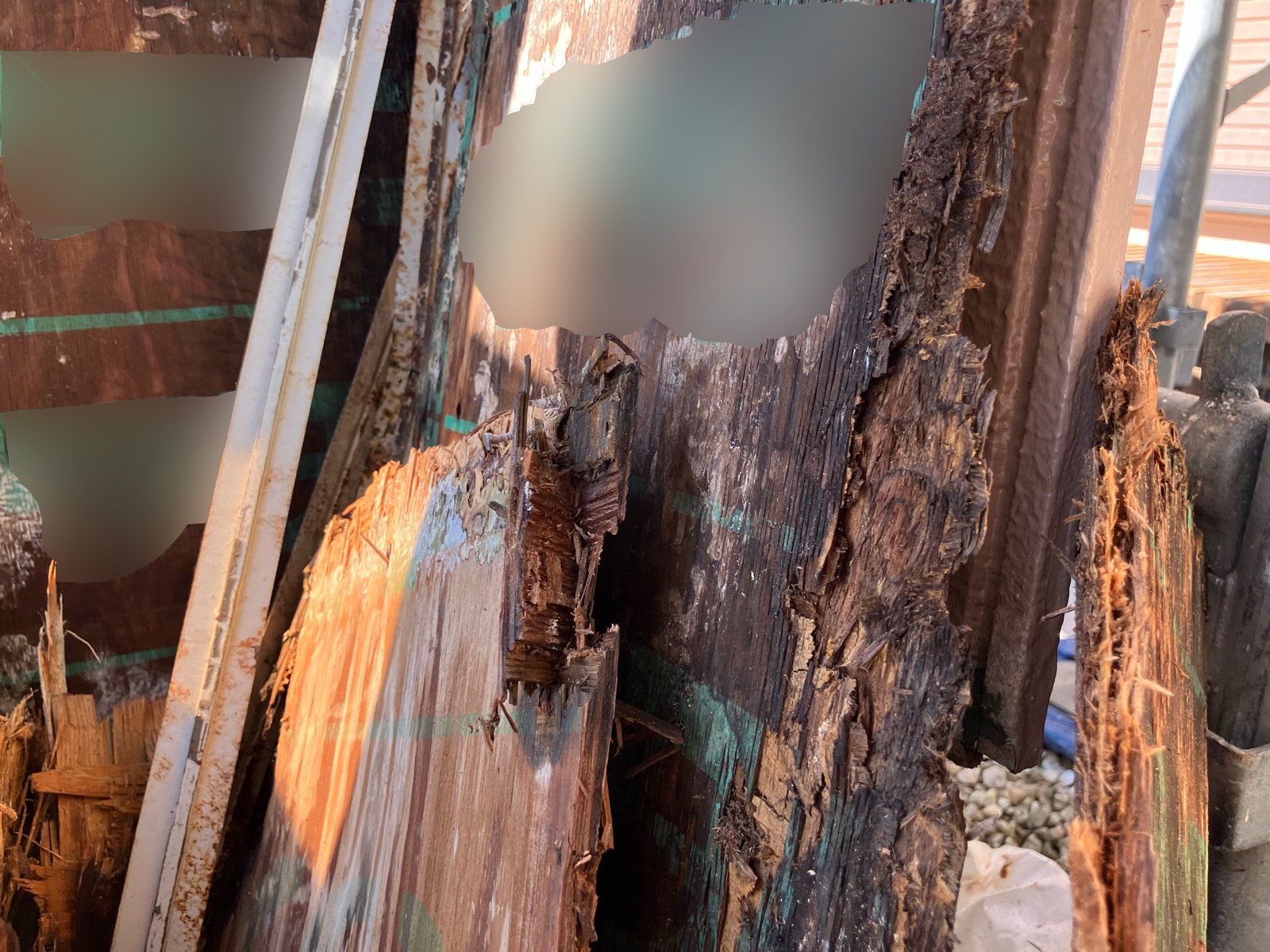 そこには、長年の雨水によって腐食が進み、黒く変色した木材が現れました💦