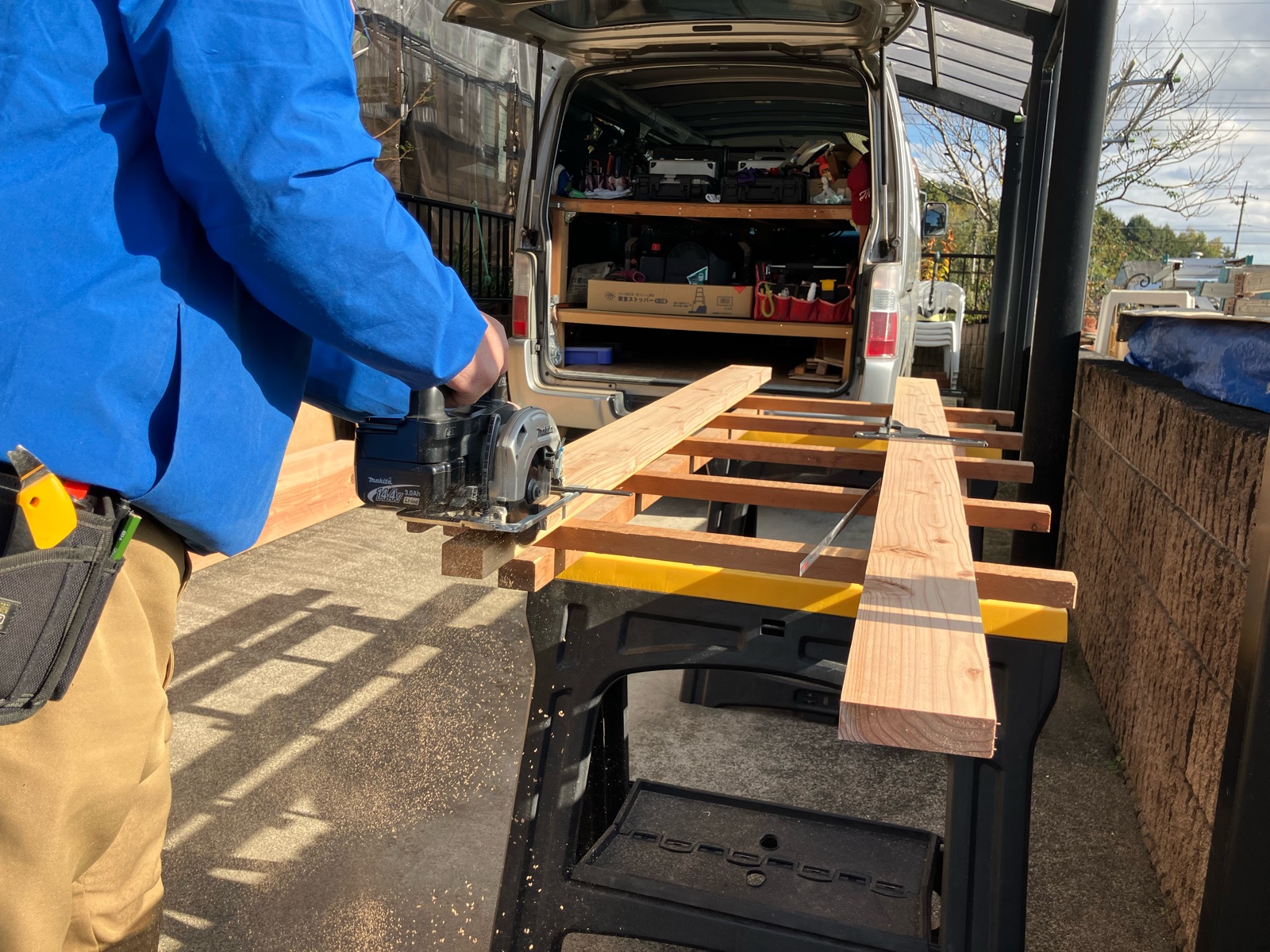 大工さんが現場で丁寧に寸法を測りながら、その場で木材をカット・加工していきます📏🪚✨