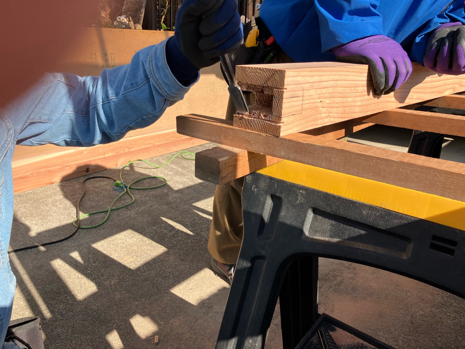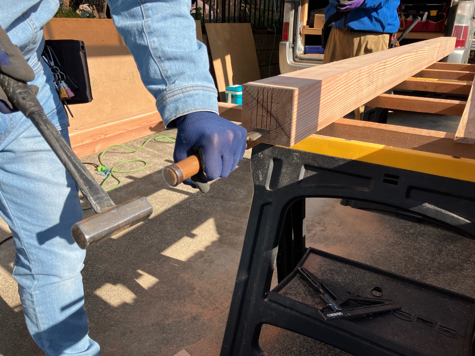 土台のボルト部分のくぼみを作るのはノミでの作業です🔨