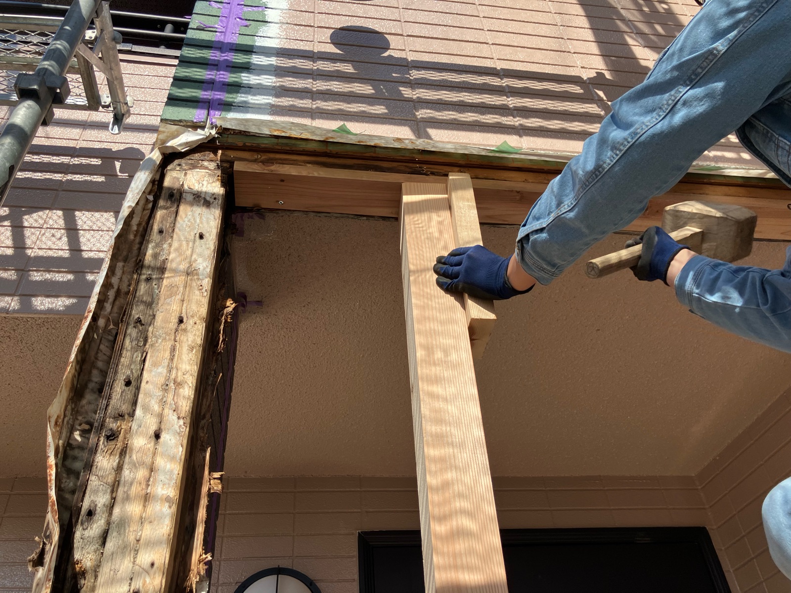 ここはベランダからの雨水がまわって、木部が腐食してしまっていた場所。