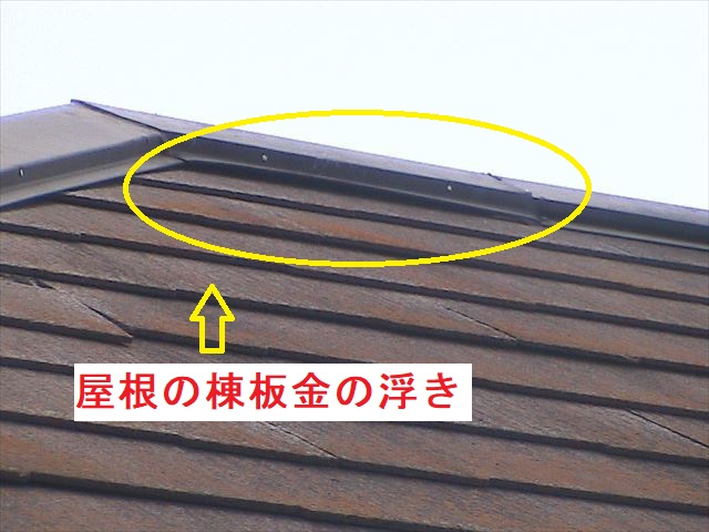 和瓦の棟と同様、トラブルが起こりやすい部分ですが、スレート屋根では板金がビスで固定されているため、年数が経つと緩みやすくなります。