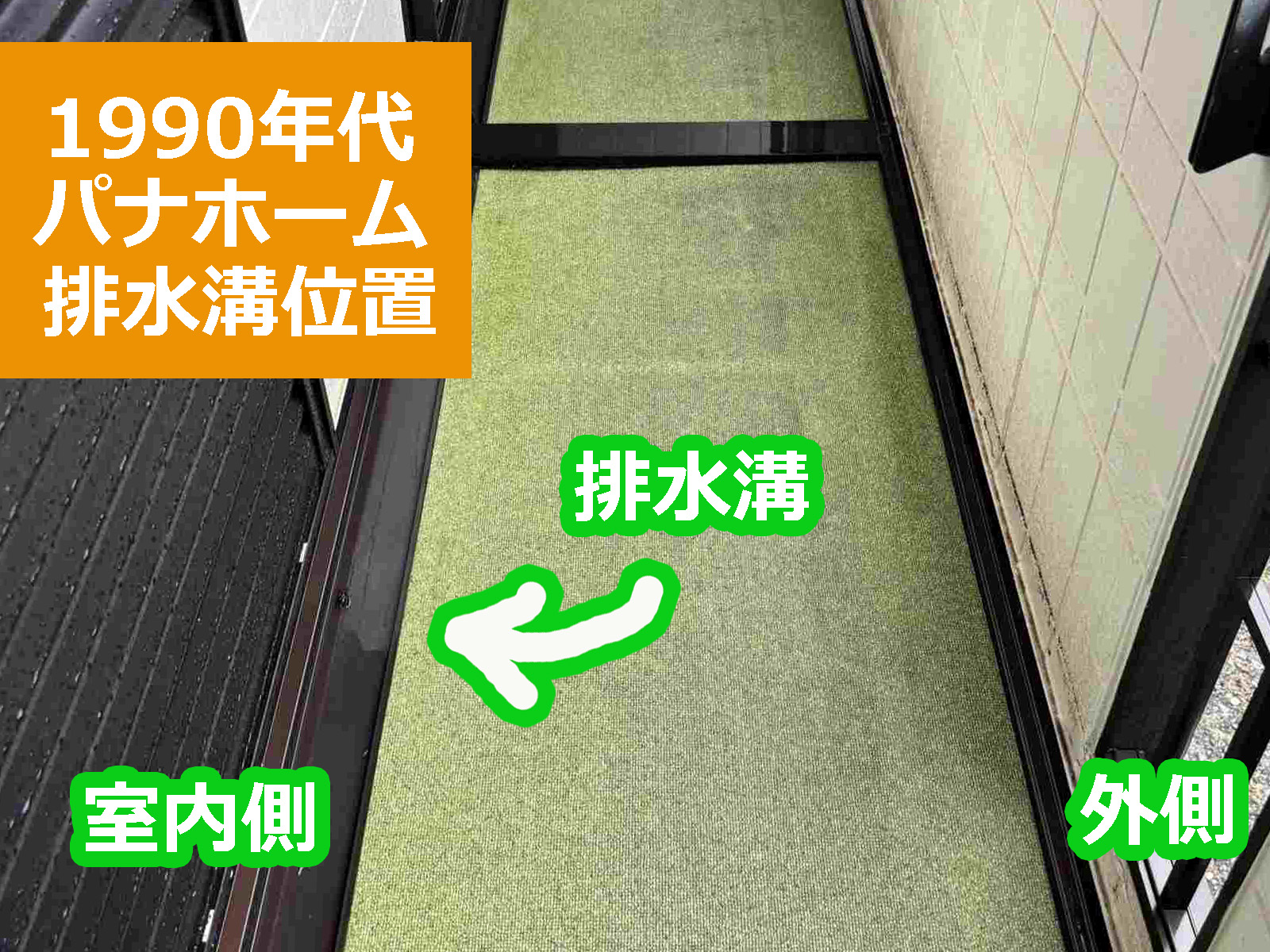 1980~90年代のパナホームに見られる、室内側に排水口があるベランダの雨漏りは、一般的な屋根や外壁とは違い、構造を理解していないと原因を見誤ることがあります。