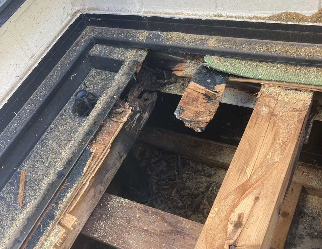 実際に私たちが対応した現場でも、「歩くと沈む感じがする」という状態から確認したところ、内部に水が回っていました。