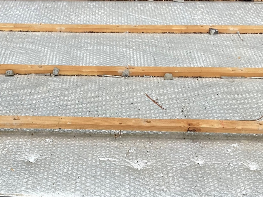 ルーフィング上に敷き込み、瓦桟で押さえていました。