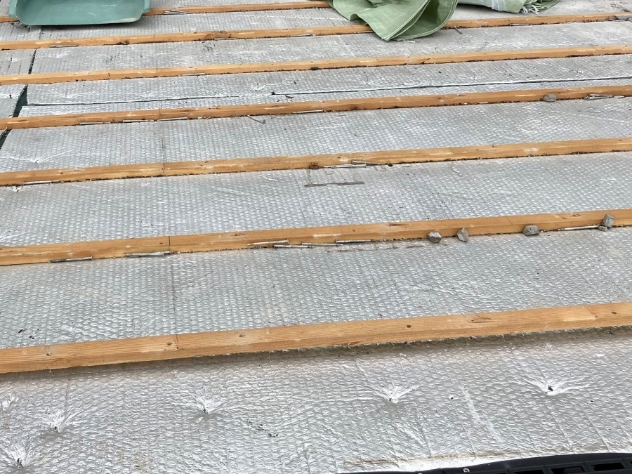 ルーフィングの増し張りを行いますので、瓦桟、断熱材は撤去します。