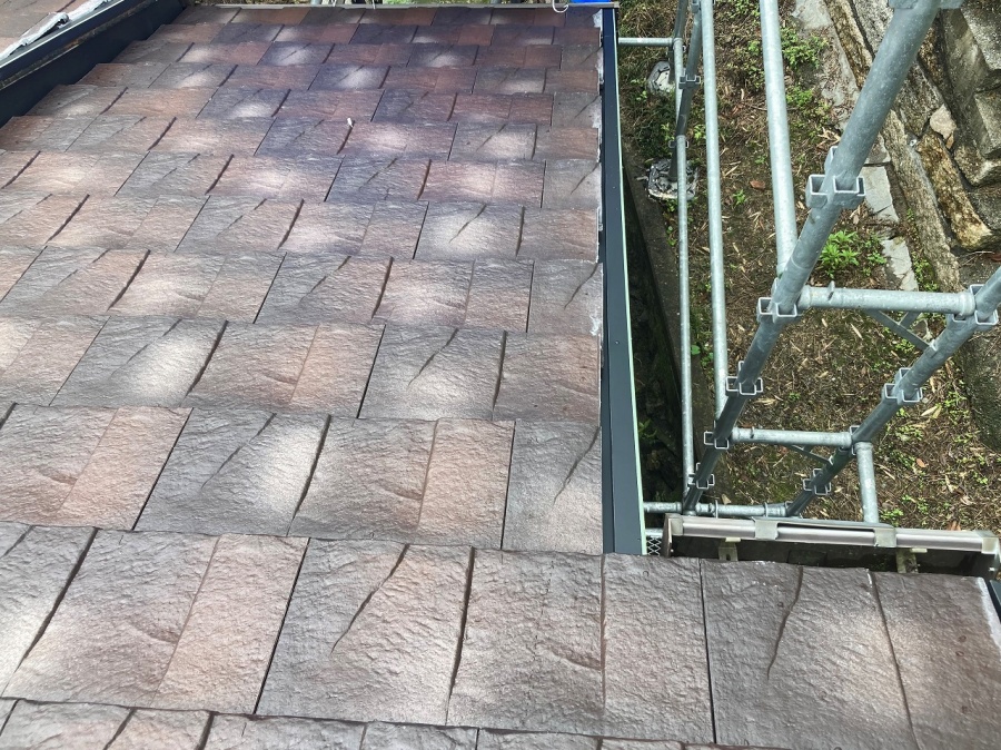 ホーム > 岡山市東区でケイミュー社「ルーガ」葺き替え施工中の収まりチェ…