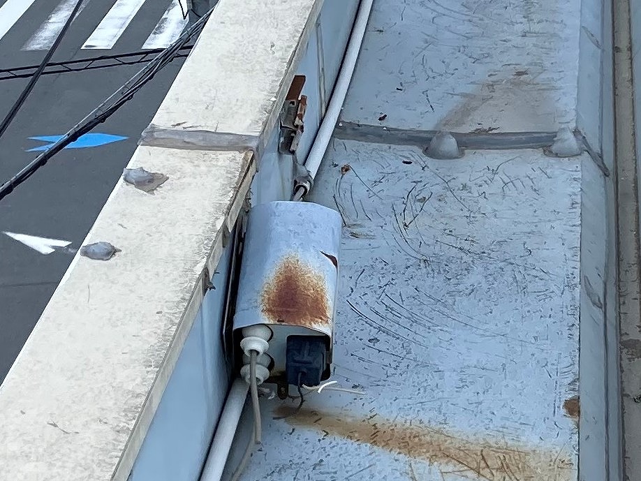倉敷市大島で店舗の雨漏り、笠木が原因?