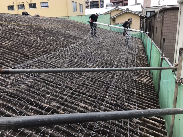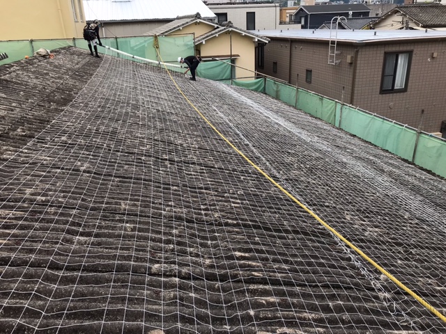 広島市南区、屋根改修工事で屋根に張る落下防止ネットとは?