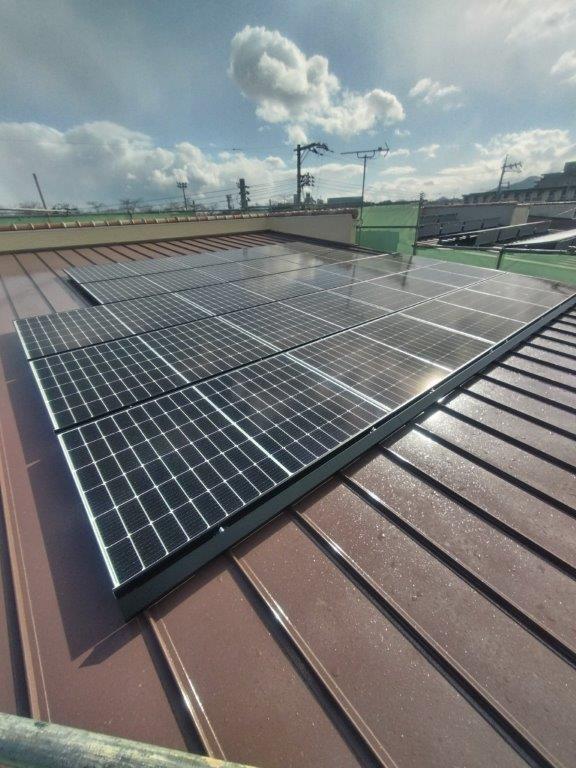 広島市廿日市市で屋根外壁塗装を行った金属製瓦棒屋根に太陽光パネルを設置しました!