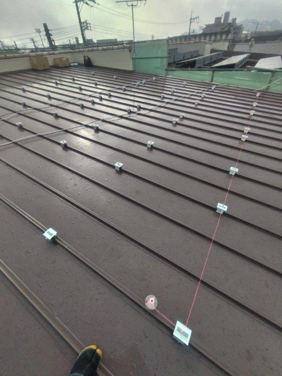 こちらは太陽光パネルを設置するにあたって、土台になる部材を設置している作業です。