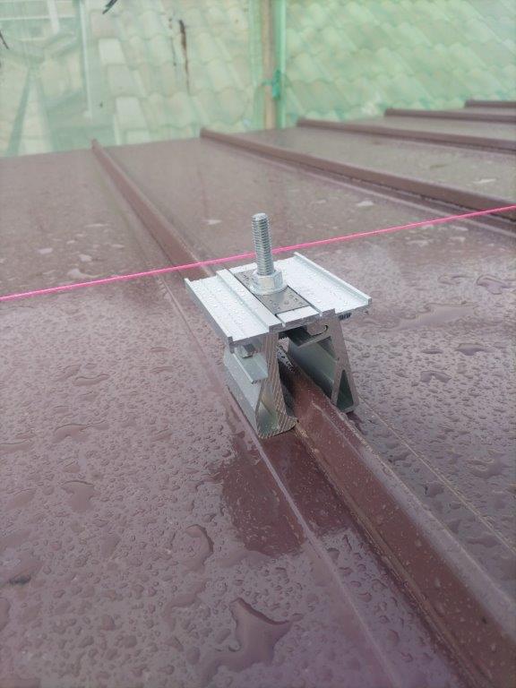 瓦棒屋根の繋ぎ目に挟み込むように考えられているので、しっかりと固定されています。