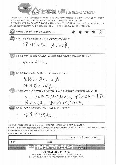 入間市 街の屋根やさん坂戸店リアルな口コミ3選!本音レビュー