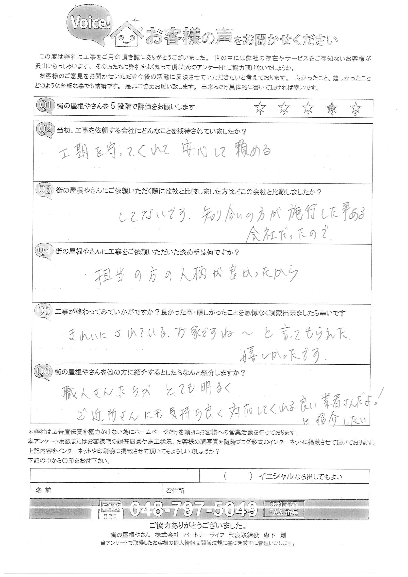 神奈川県のお客様に工事前のアンケートに答えていただきました!