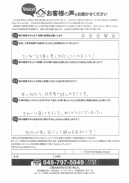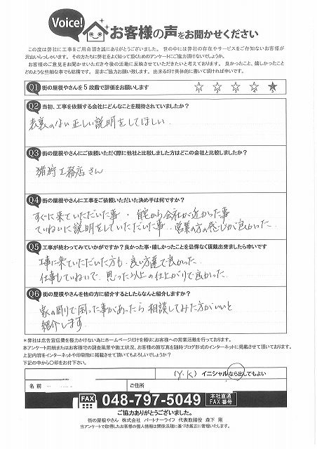 今回の現場ブログは・・狭山市で街の屋根やさん坂戸店が工事を行ったお客様の口コミ3選をご紹介します。