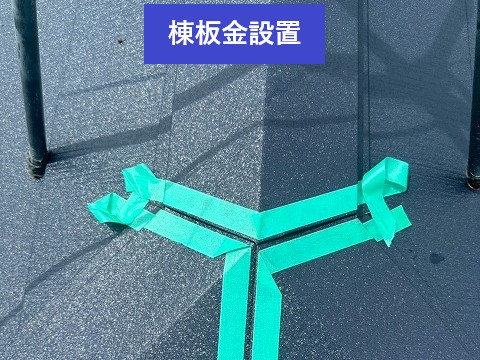 棟板金を設置し、接続部はコーキングで固定。雨水の侵入を防ぎます。