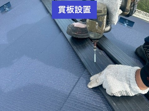 棟板金の下地として樹脂製貫板を設置。耐久性が高く、屋根全体の安定性を向上させます。