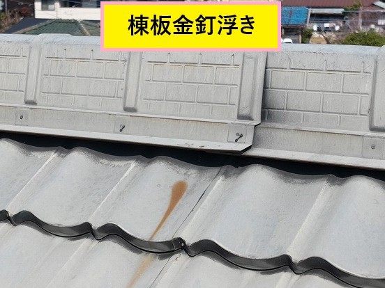 さらに、棟板金の浮きも確認され、複数の要因が重なった雨漏りです。
