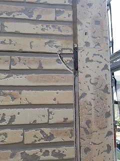 サイディングは防水性を失い始めると雨水が染み込み⇒そして乾くを繰り返すと浮いてしまい反り返ってしまうのです。劣化症状のひとつです。