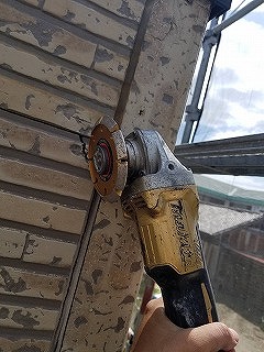 修理方法は、外壁の種類や場所などによって変わってきますが、一般的に一番多いお直し方法は、割れている箇所にサンダーを入れてコーキングがしっかりと入り込むようにします。ちょっとした隙間から雨水が浸入してしまっては雨漏れの原因になってしまいますので、しっかりとコーキングを注入し隙間のないように!!
