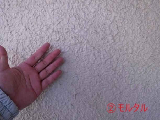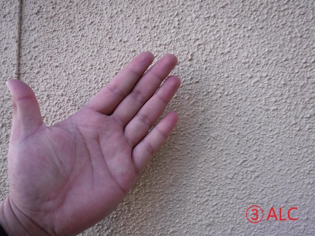 モルタルとALCには白い粉が付いていませんよね!!まだ塗装は大丈夫!!他のヒビやコーキングの劣化がある場合は一部工事などをお勧めします。