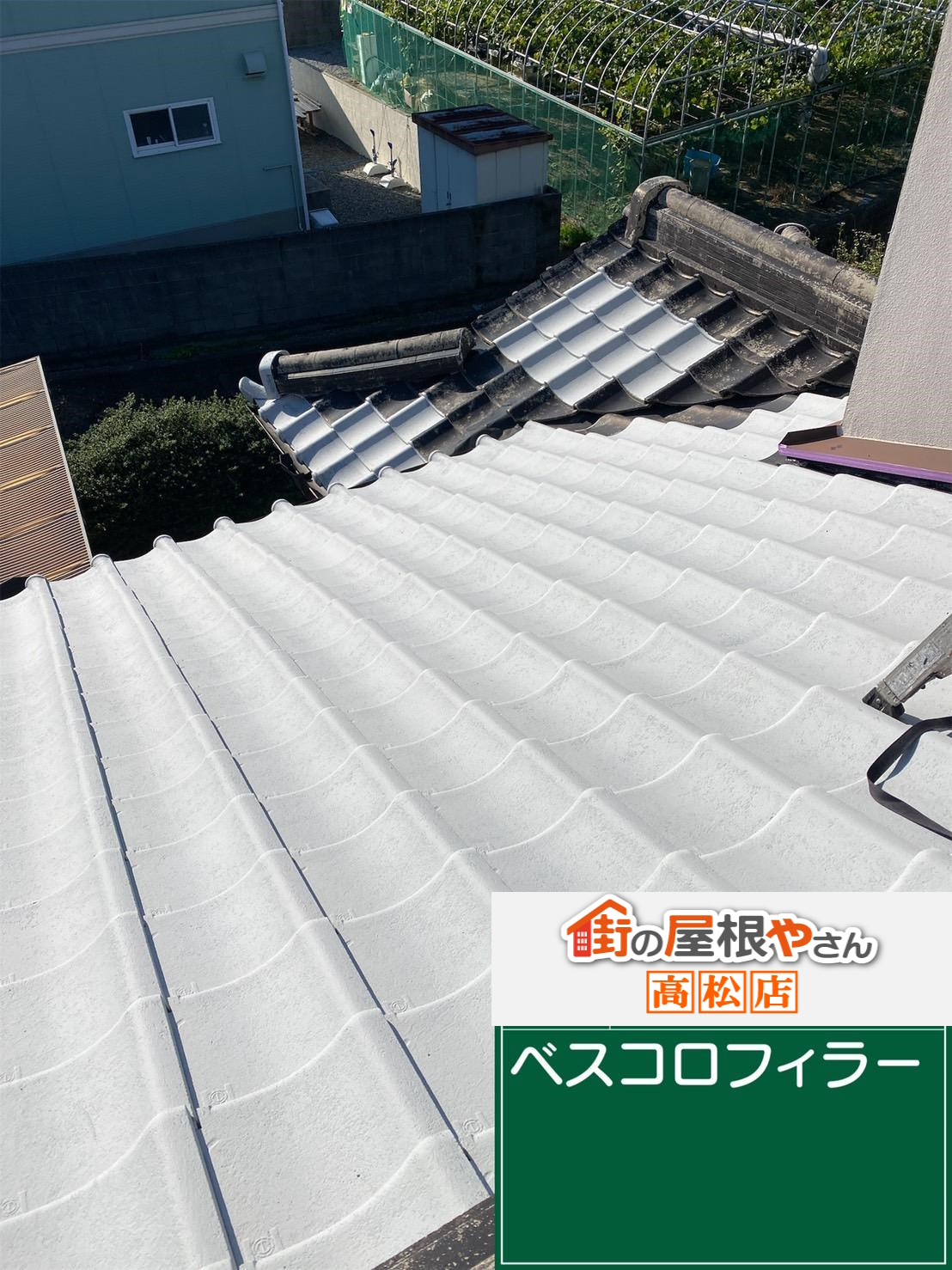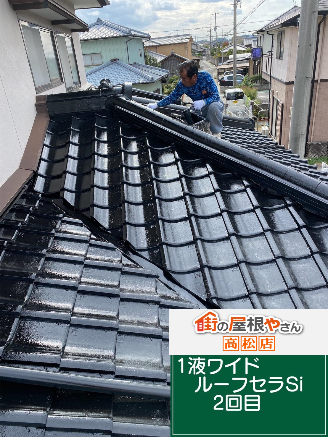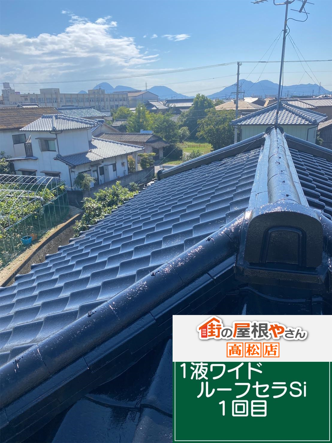 綺麗になったら瓦のヒビや割れを補修し、塗装するために下地を塗ります。