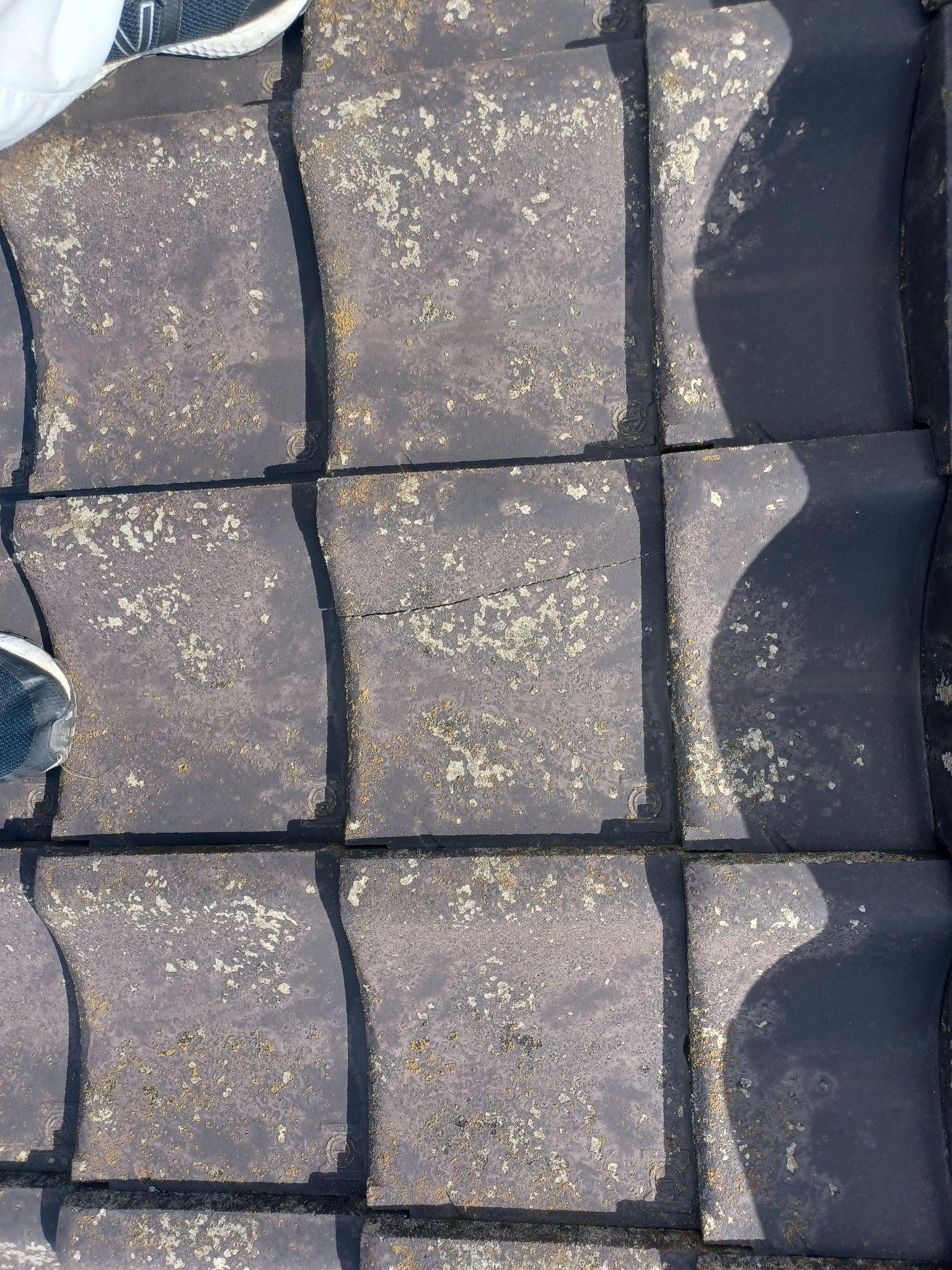 カビや傷みによる劣化と、経年劣化による瓦の割れやヒビがあり、特に雨漏りなど家の中でのトラブルはないそうですが、出来るだけ早急に工事をおこなう必要があります。