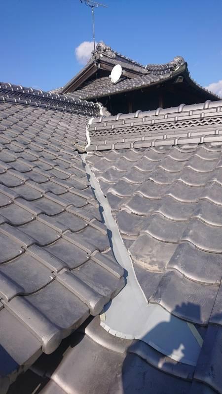 ホーム > 丸亀市にて2階建て和瓦屋根、谷板金交換工事