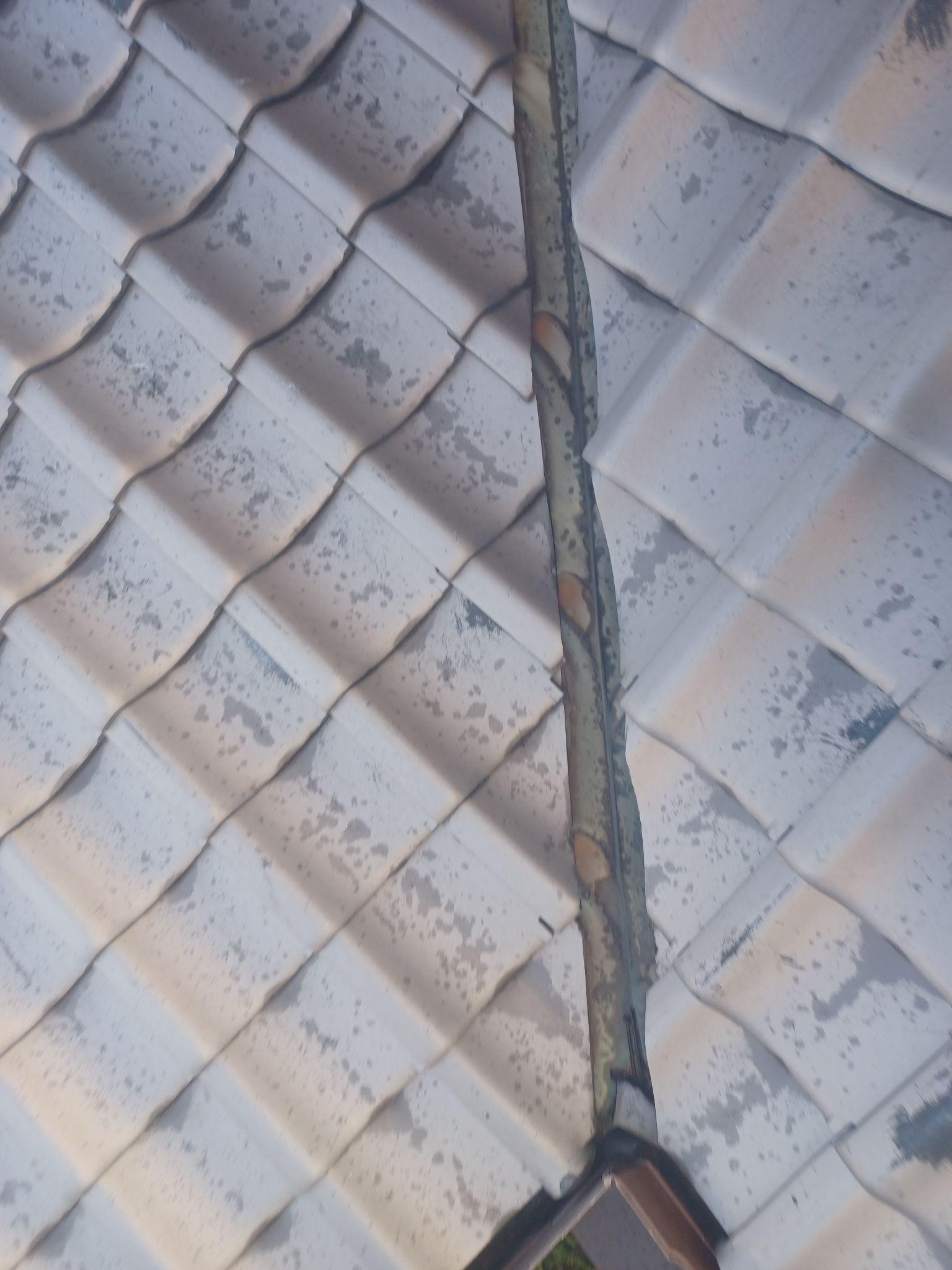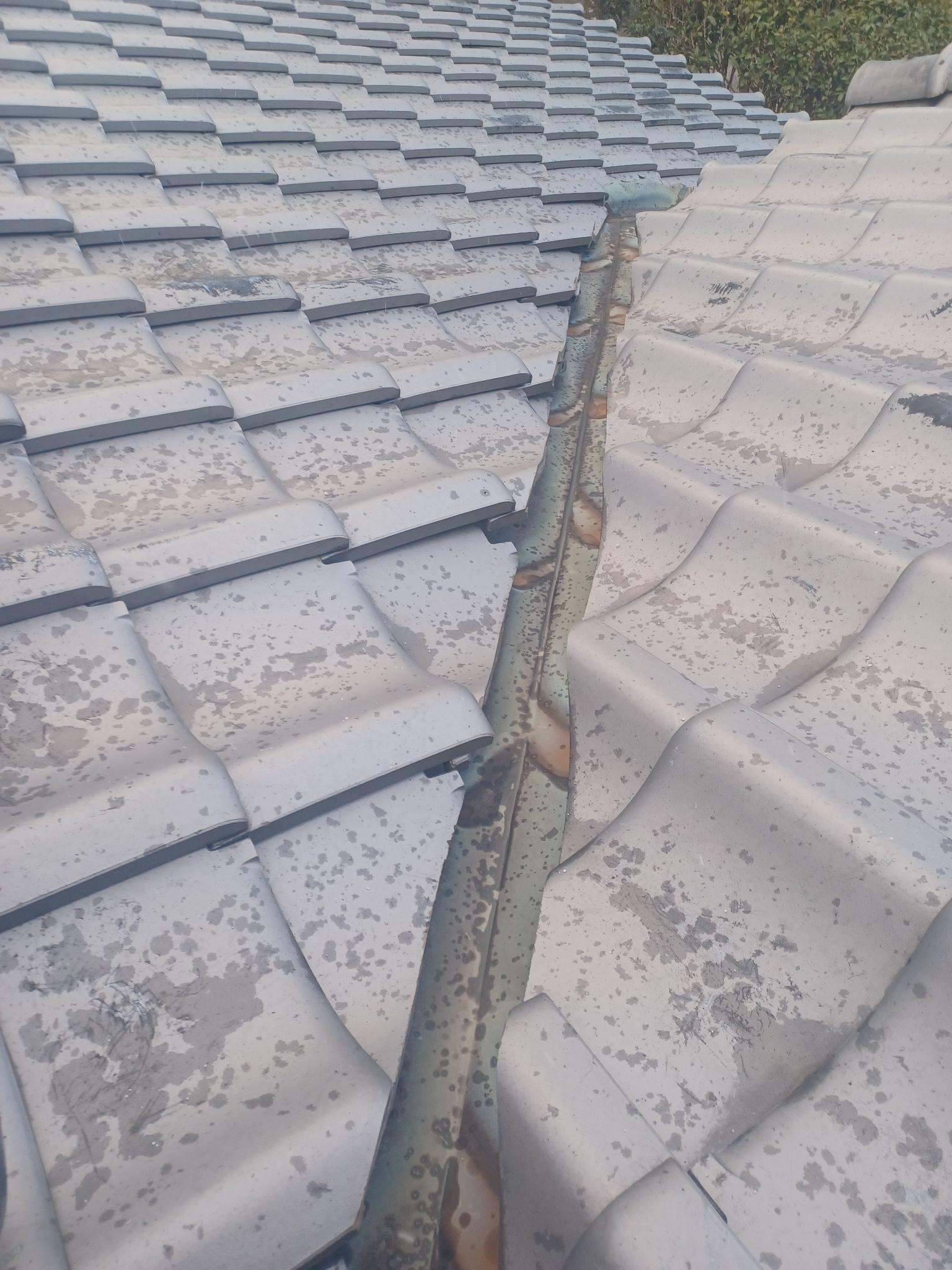 屋根自体の傷みは少ないものの、谷板金の錆など劣化、傷みがかなり目立っていることをお伝えし、谷板金交換の工事をおすすめさせていただきました。